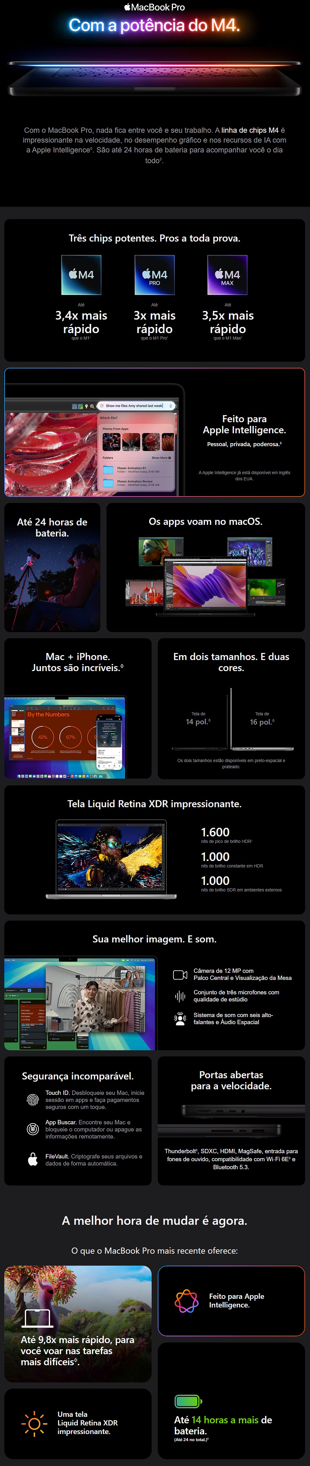 | Processador (CPU) | Apple M4 Max com 14 núcleos |