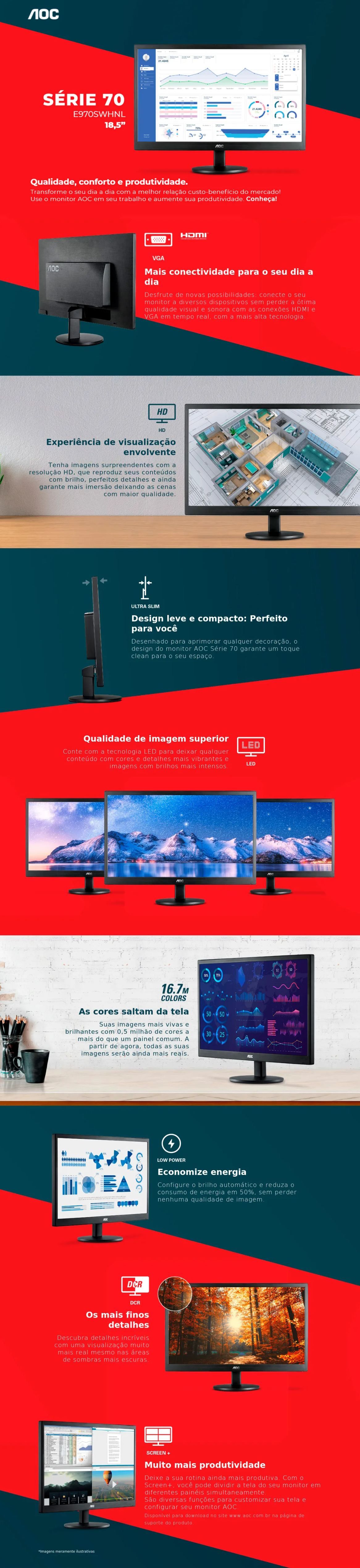 - Resolução máxima: 1366 x 768 @ 60 Hz (HD)
