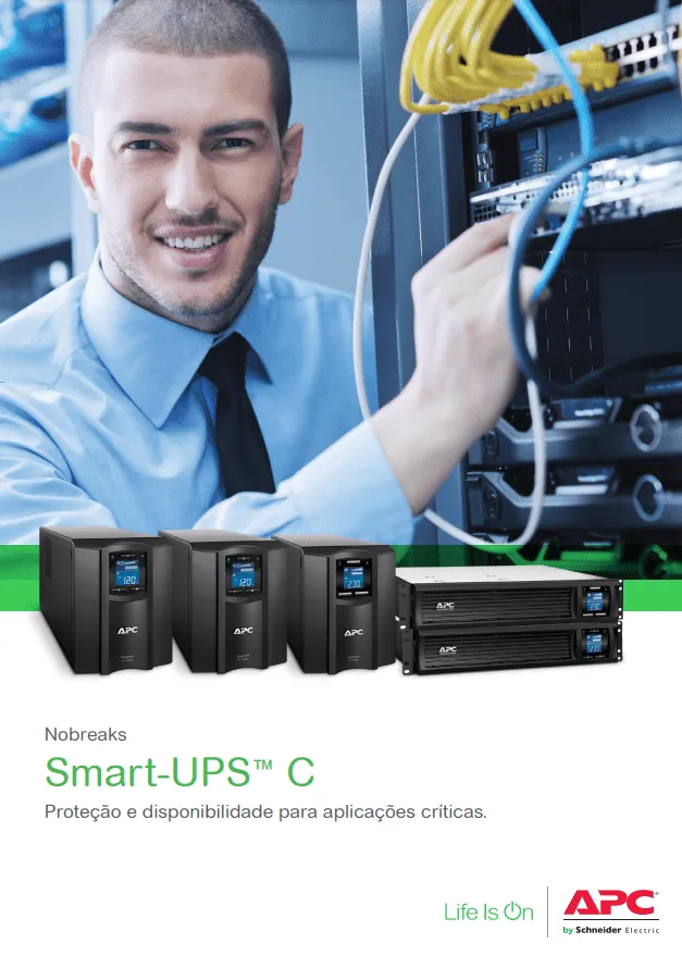 Os Nobreaks da linha APC Smart-UPSTM C, foram desenvolvidos para garantir proteção, disponibilidade e energia pura e estabilizada aos equipamentos sensíveis. Os produtos são compatíveis com fontes PFC, possuem display LCD que fornece informações claras e rápidas sobre o status do Nobreak e suas baterias, alta eficiência energética com a função Green Mode, aliada ao software de gerenciamento com recursos que asseguram o controle e monitoramento do Nobreak e dispositivos conectados.