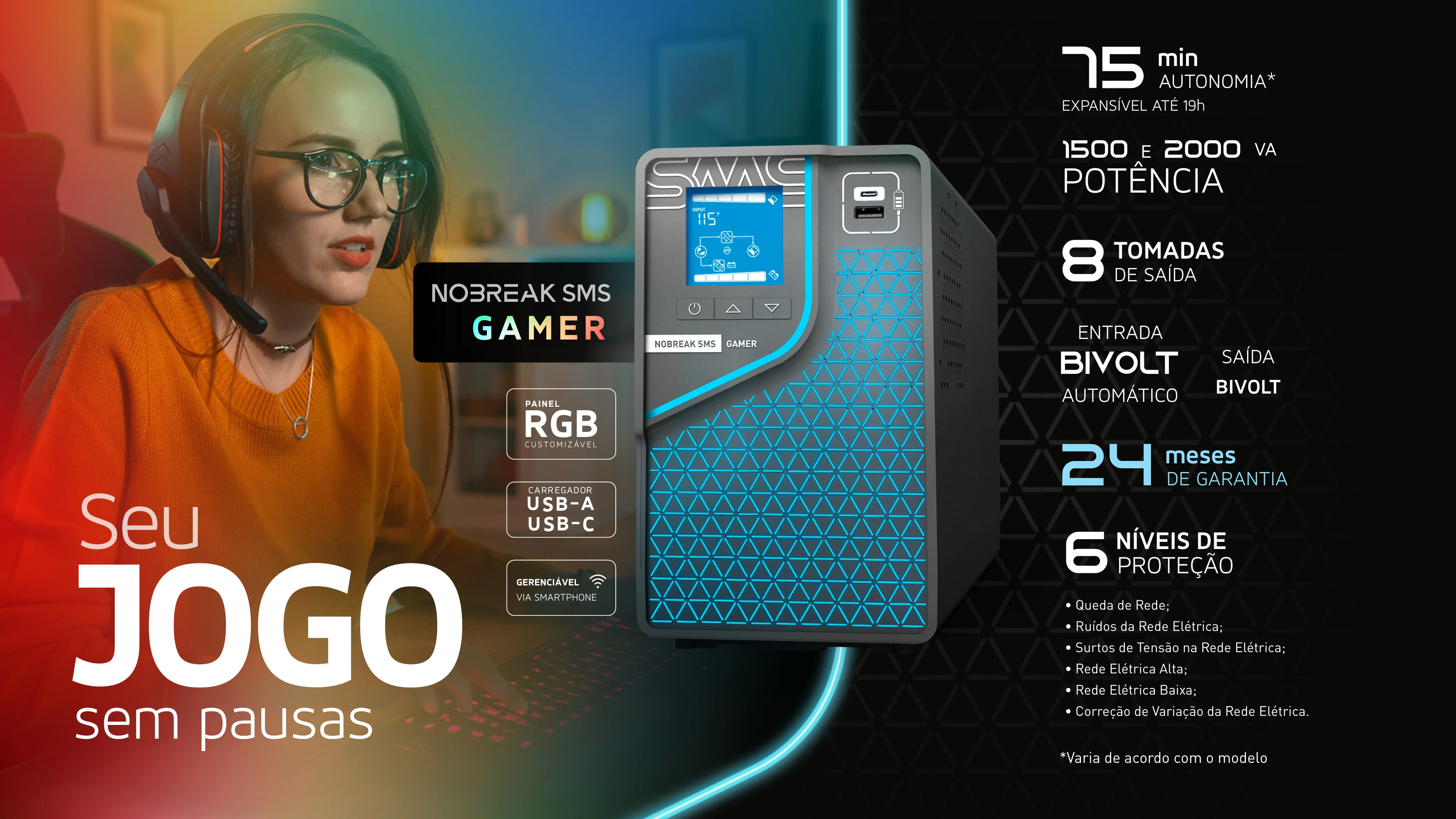 Nobreak SMS Gamer 2000VA, Bivolt E/S, Wifi - 29601