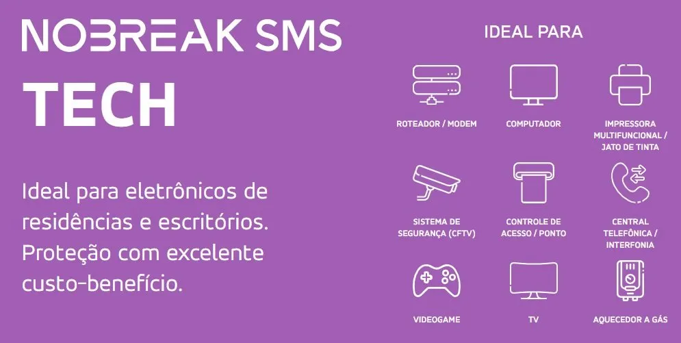 Nobreak SMS Tech 1400VA Entrada Bivolt e Saída 220V - 29306