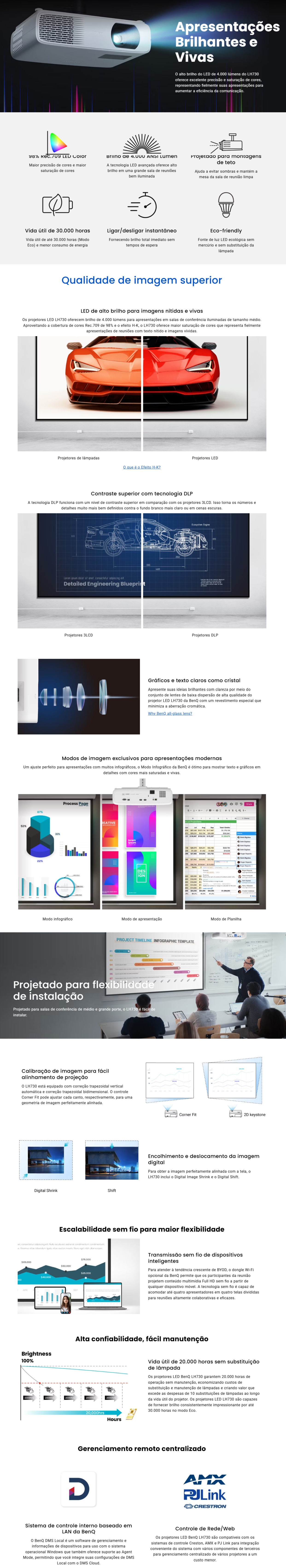 Projetor Benq LH730, 4000 ANSI Lumens, LED, DLP, Full HD, 4K, USB, HDMI, D-SUB, Áudio 10W - 9H.JLK77.15L (Sob Encomenda)