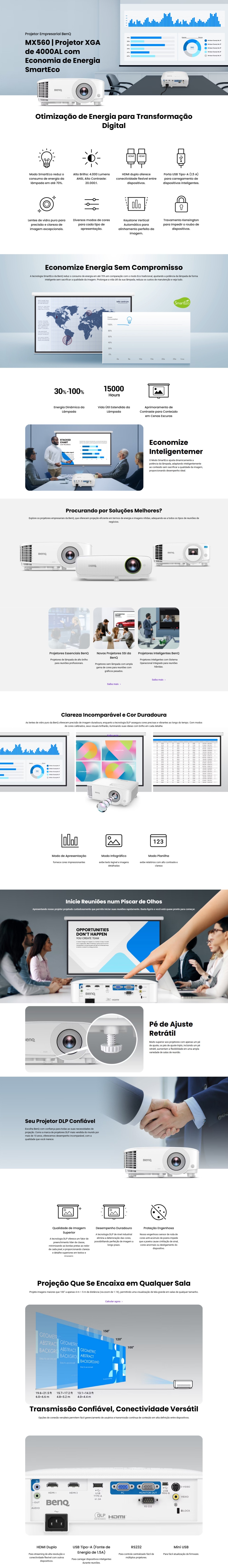 Projetor Benq MX560C, 4000 ANSI Lumens, Lâmpada, DLP, XGA, WUXGA, VGA, HDMI, USB, Wi-Fi, Áudio 10W, até 300 Polegadas - 9H.JTE77.1NL
