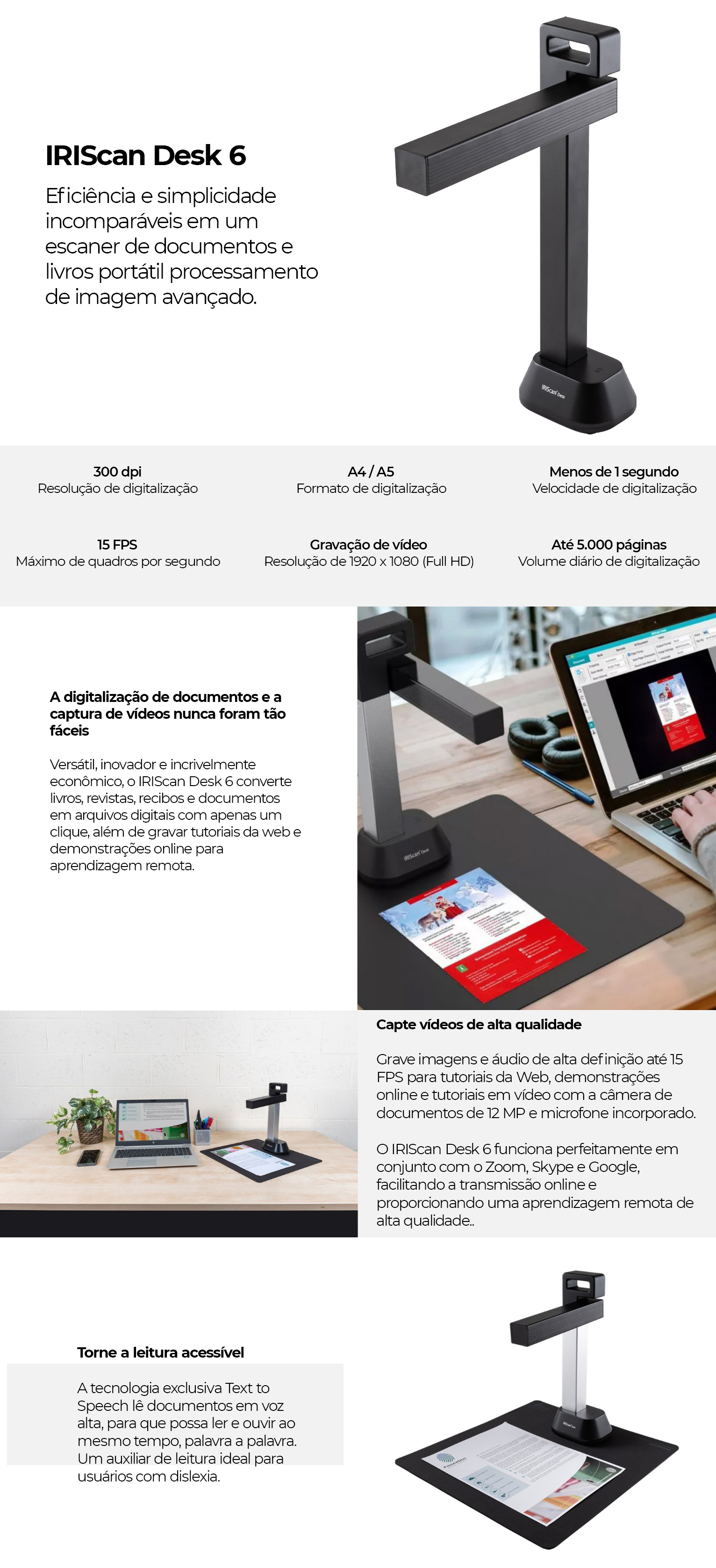 Descubra uma nova abordagem à digitalização de documentos, livros e vídeo de demonstração. Totalmente compatível com Zoom, Teams, Skype ou Google, o IRIScan Desk 6 irá melhorar as sessões remotas e a experiência e o conforto do ensino à distância!