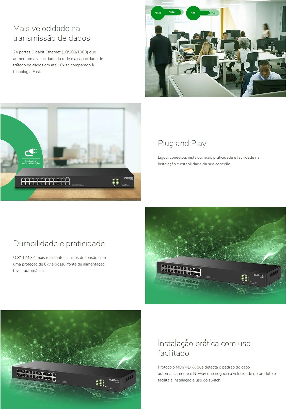 O Switch S1124G é o produto ideal para aplicações que exigem alto tráfego de dados, permitindo a integração de computadores, impressoras e dispositivos IP.